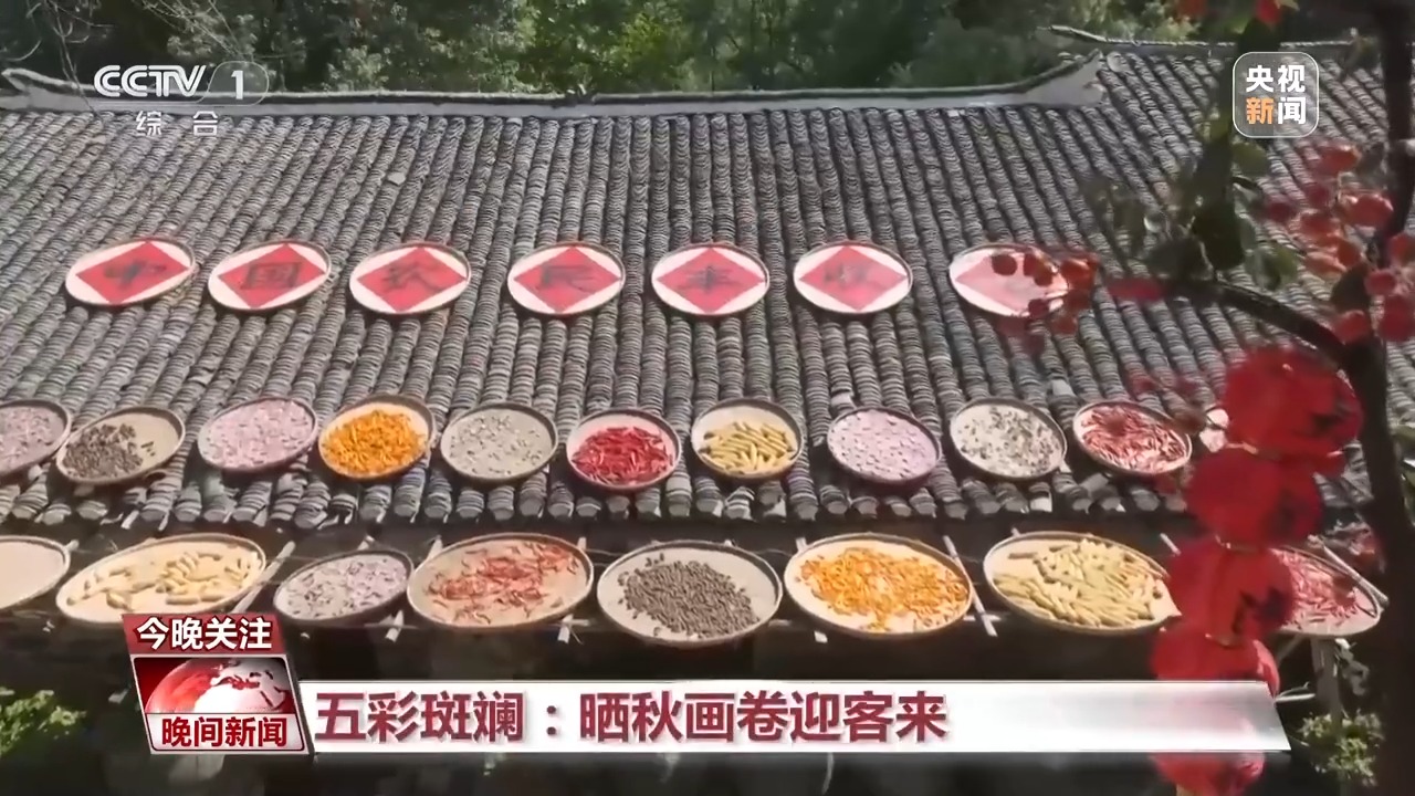 各种丰收的颜色,汇聚在一起,便是一幅富有诗意的“晒秋画卷”。这两天,在湖北武汉的古村落大余湾,一场晒秋与稻田收割交织出的丰收盛景正徐徐展开。在安徽黟县西递古村落,村民们用玉米打造出巨型“玉米龙”。色彩斑斓的农作物晾晒在房前屋后的空地上,与粉墙黛瓦相映成趣。